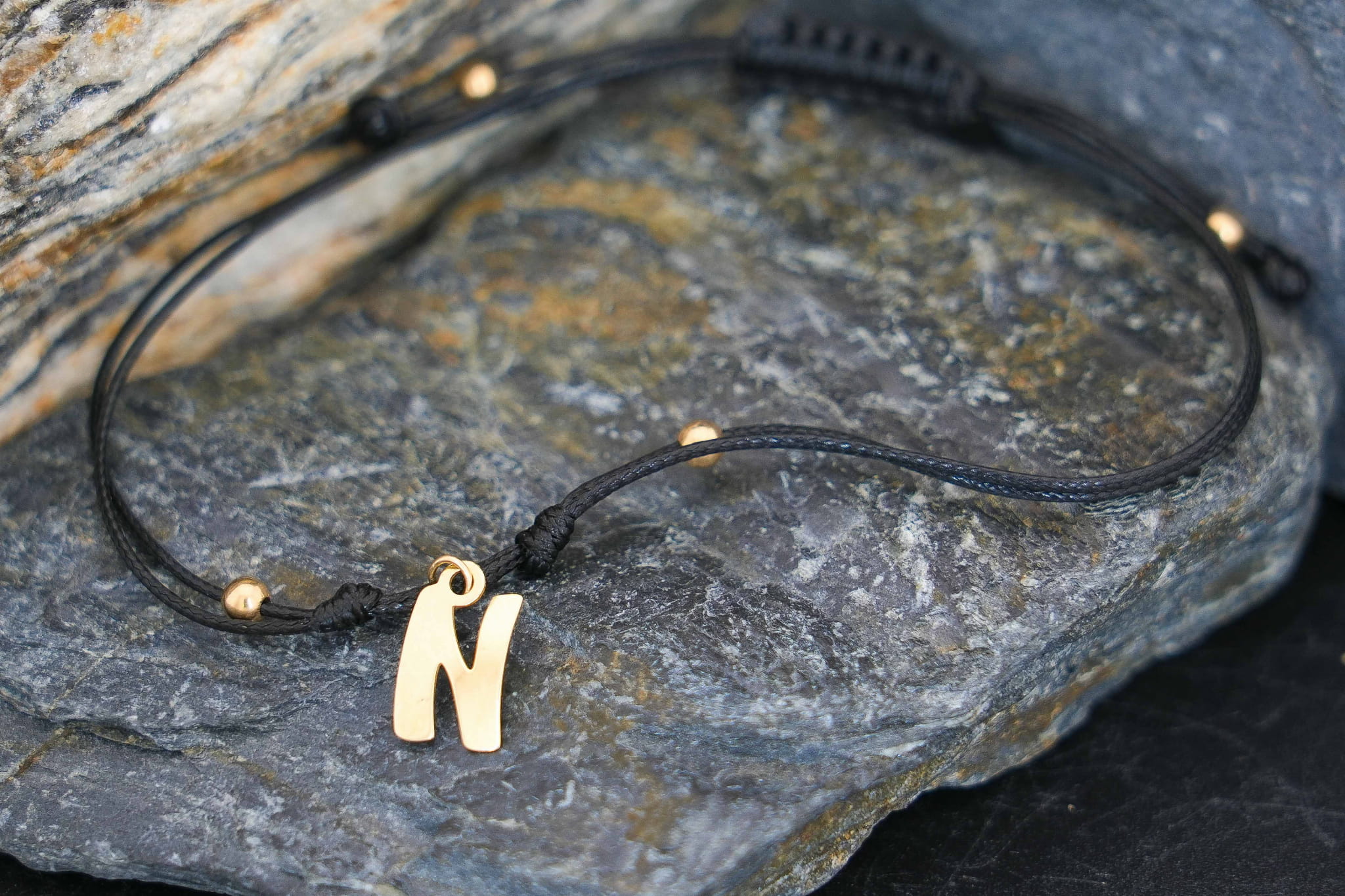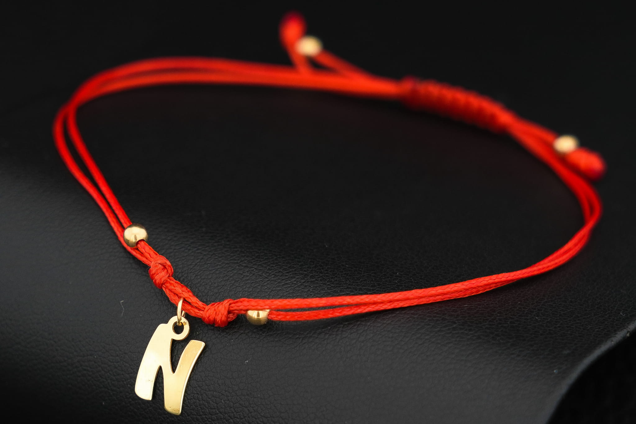 Złota Bransoletka Sznurkowa z Dowolną Literką – Personalizowana Elegancja
