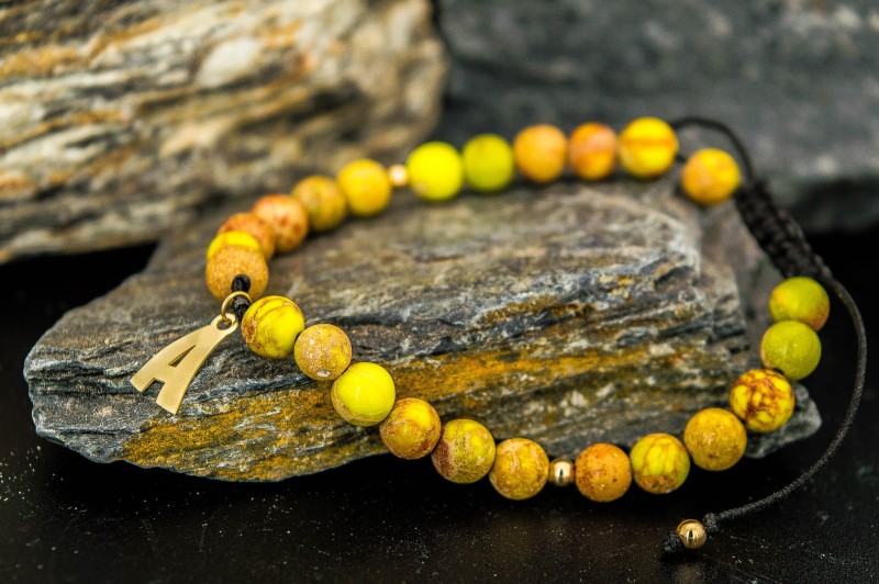 Bransoletka Z Literką, Złoto Połączone z Jaspisem