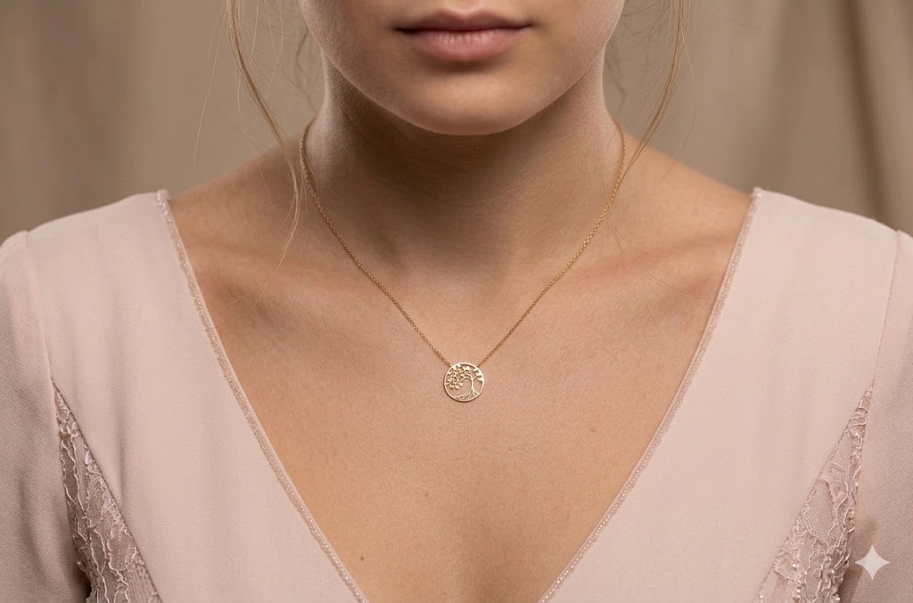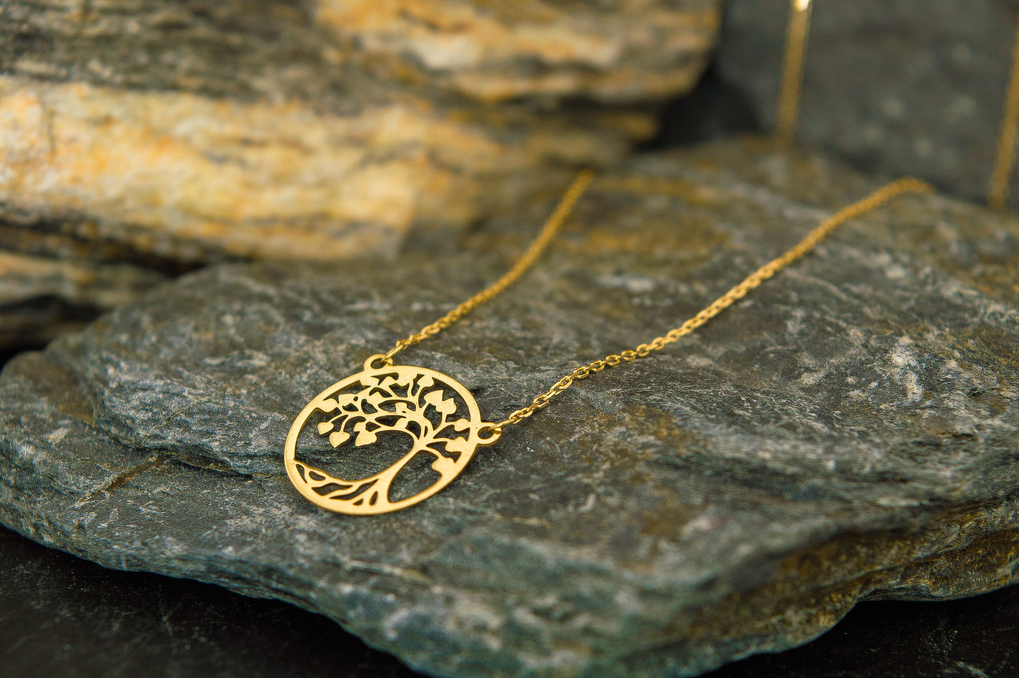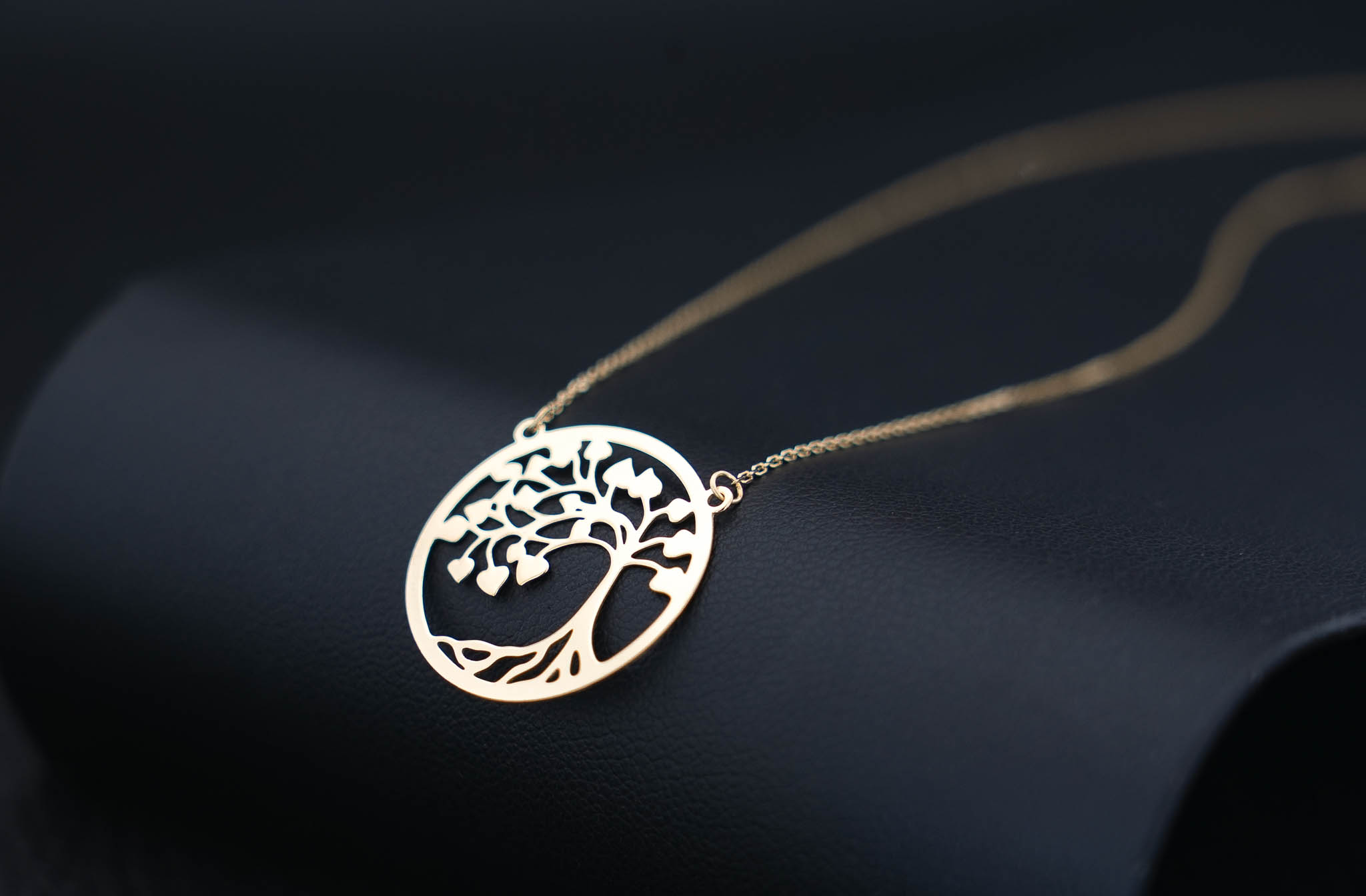 Szukasz biżuterii, która zachwyca nie tylko formą, ale i głębokim przesłaniem? Ten wyjątkowy złoty naszyjnik z motywem Drzewka Szczęścia to piękny, osobisty talizman. Drzewo życia od wieków symbolizuje siłę, nieustanny rozwój, harmonię oraz silne więzi rodzinne. To idealny dodatek dla kobiet ceniących biżuterię z duszą, doskonale wpisujący się w trend delikatnych naszyjników typu "celebrytka".
