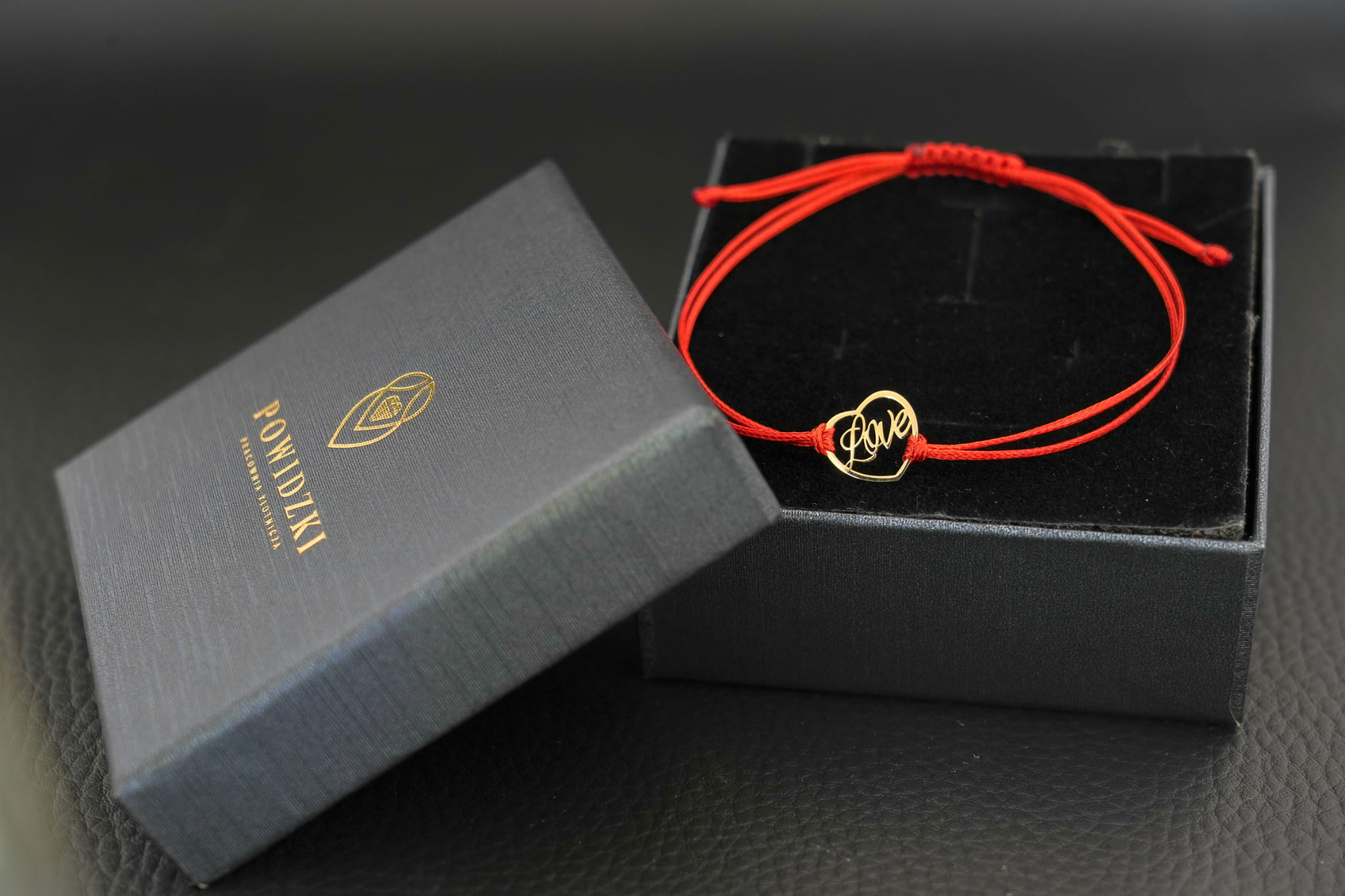 - Materiał: Złoto próby 585, czerwony woskowany sznurek
