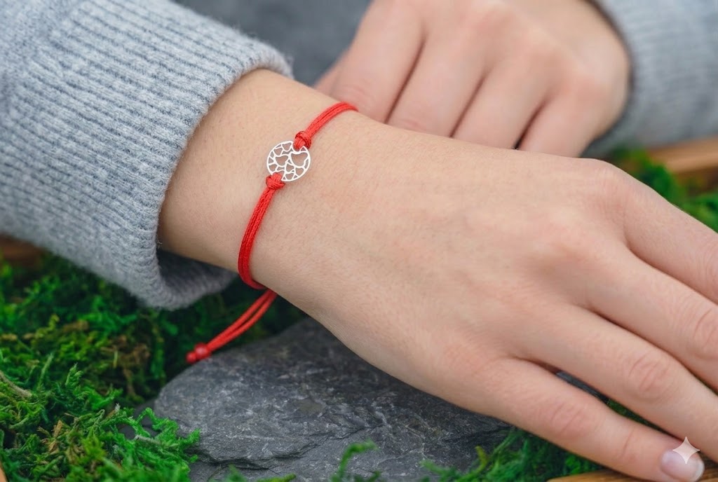 Srebrna zawieszka została starannie wpleciona w cienki, lecz niezwykle wytrzymały czerwony sznurek jubilerski. Bransoletka została zaprojektowana z myślą o maksymalnej wygodzie – wyposażono ją w praktyczny, przesuwany węzeł makramowy. Ten system pozwala na płynną i bezproblemową regulację obwodu, dzięki czemu założysz ją samodzielnie w kilka sekund i perfekcyjnie dopasujesz do swojej ręki. Końcówki sznurka estetycznie wykończono drobnymi supełkami.