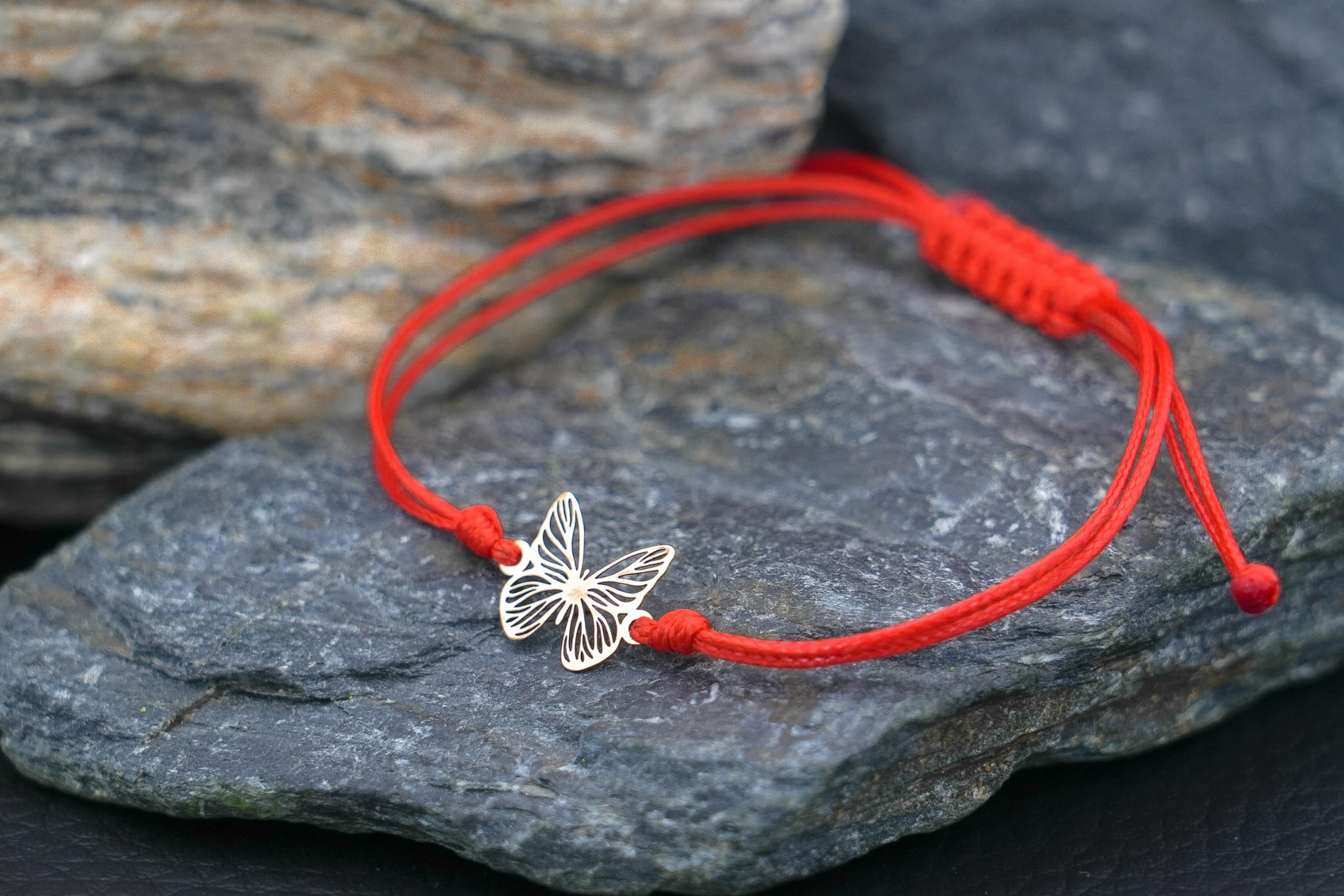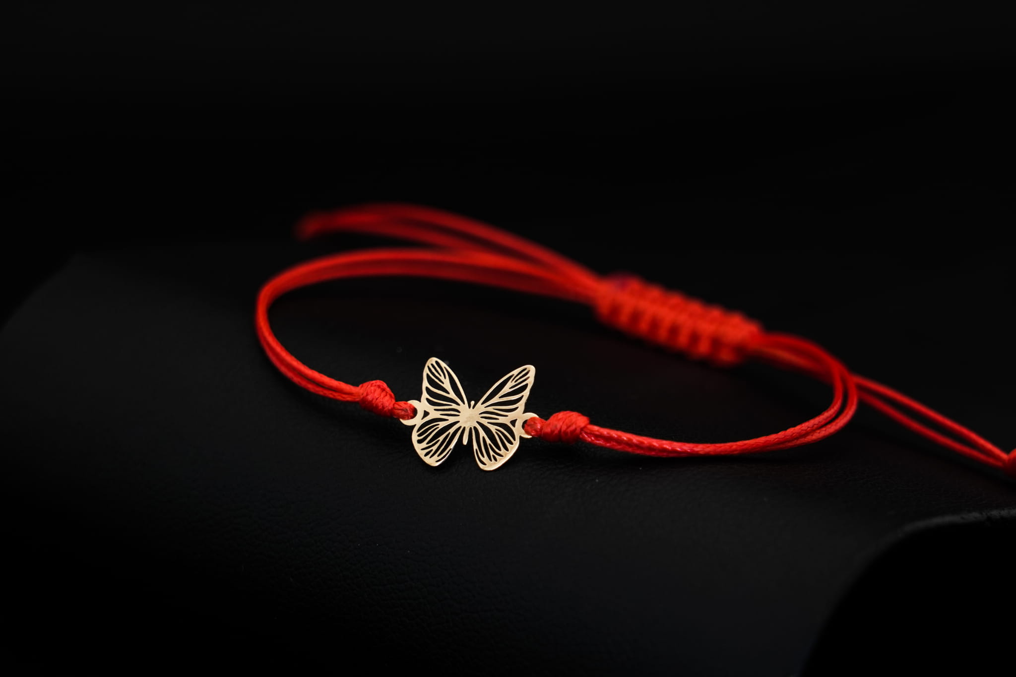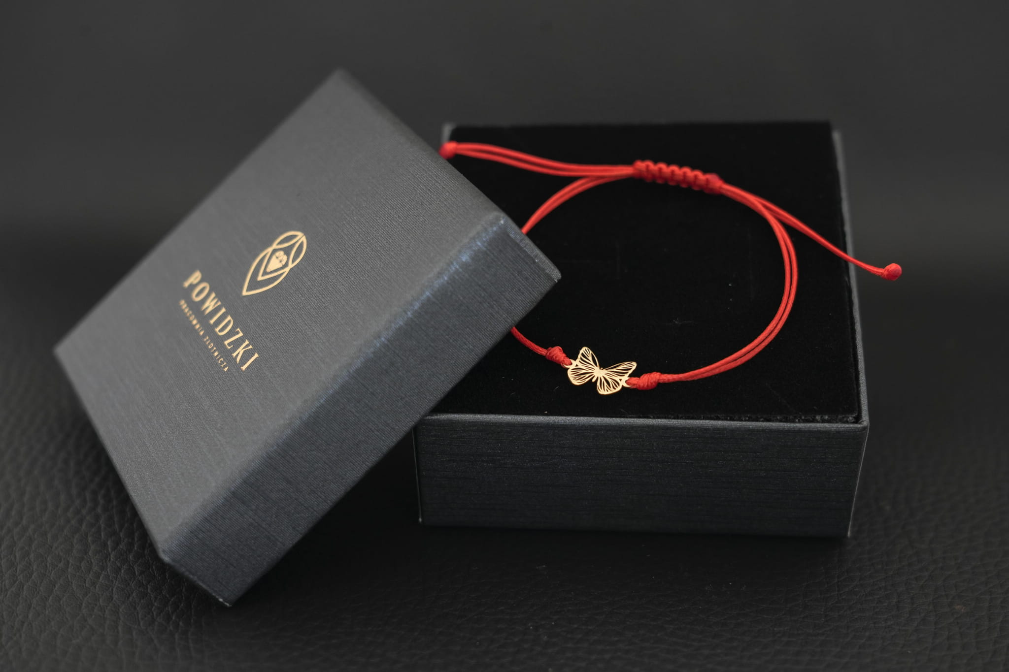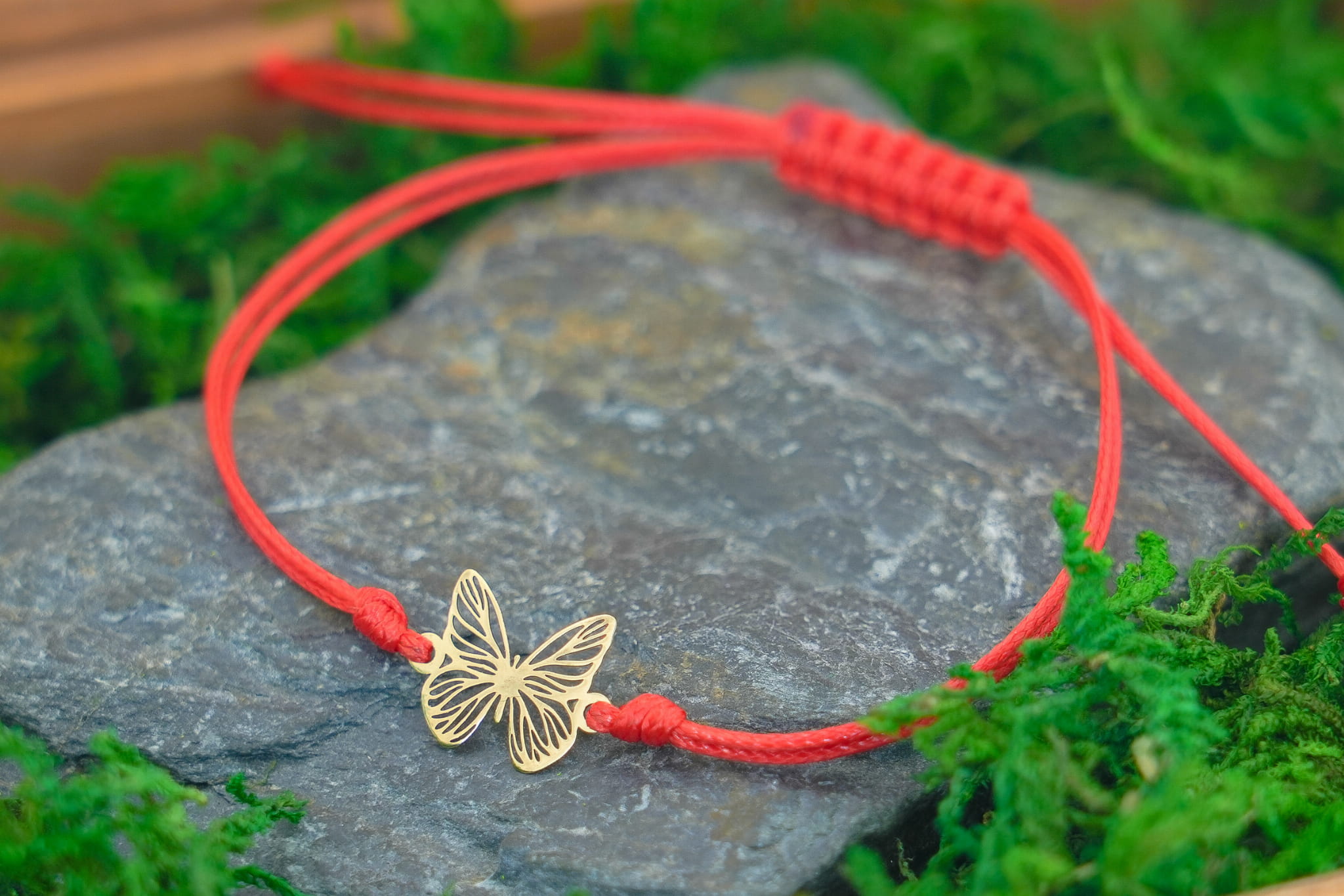- Materiał: Złoto próby 375, czerwony woskowany sznurek