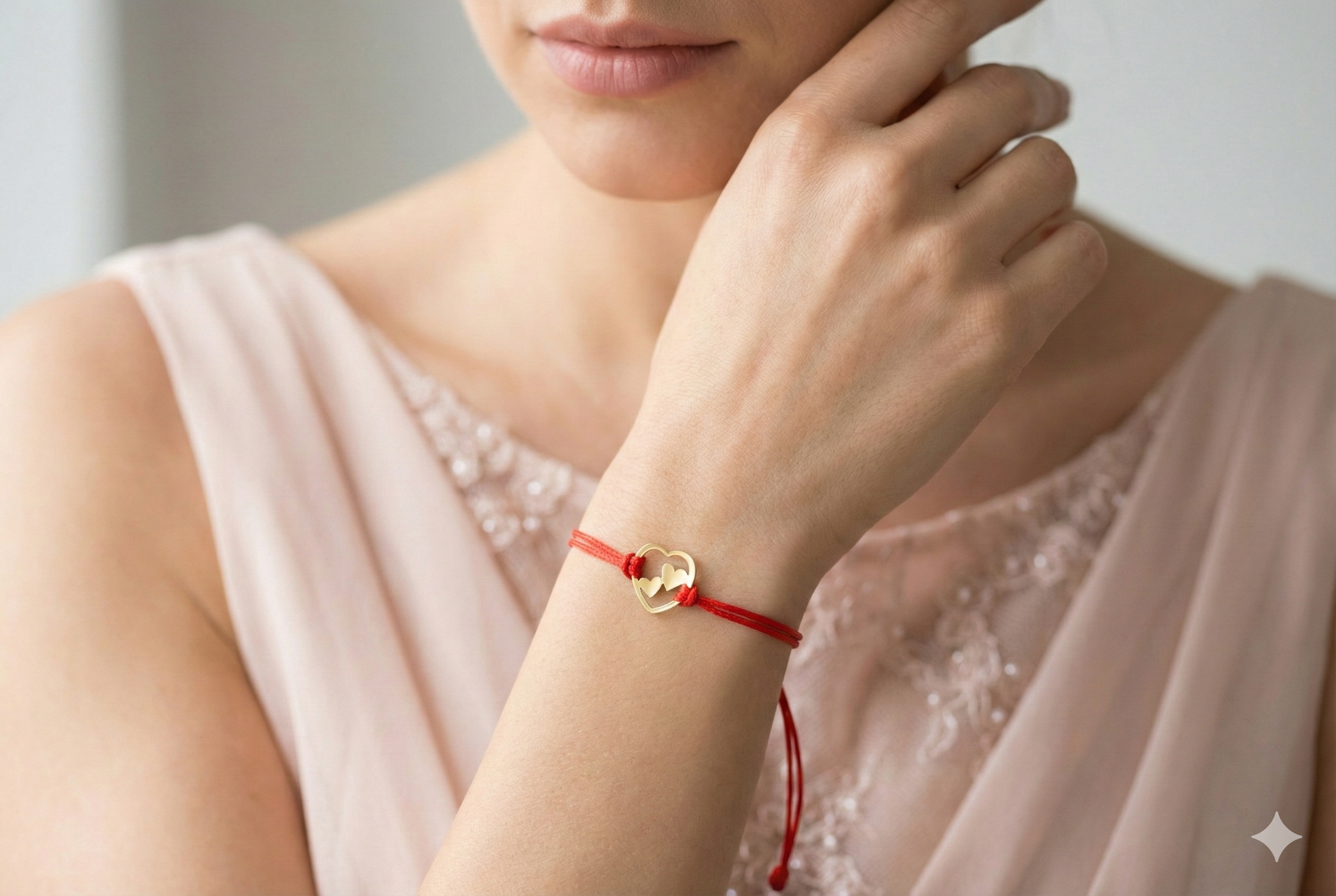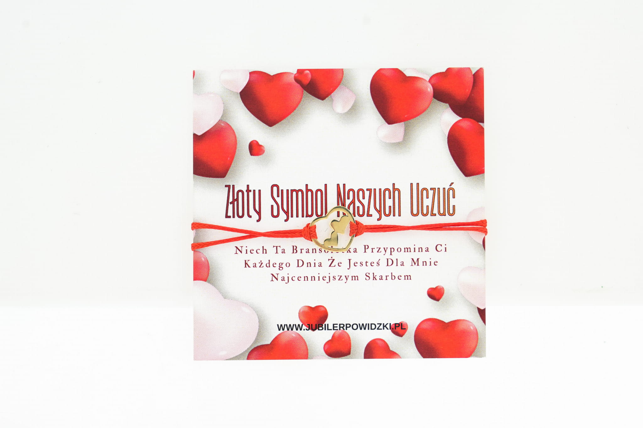 Złota Bransoletka Sznurkowa 585 – Serce z Wypełnieniem "Dwa Serca"