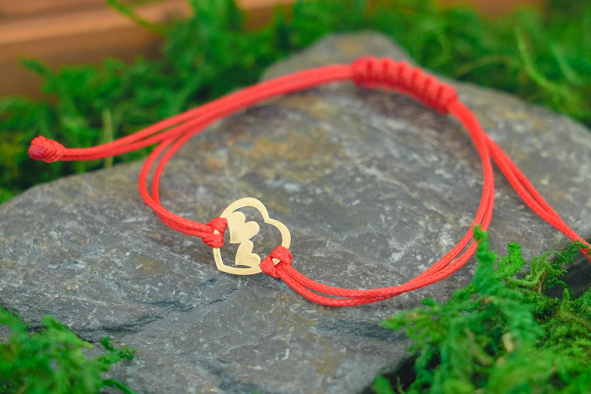 - Materiał: Złoto próby 375, czerwony woskowany sznurek