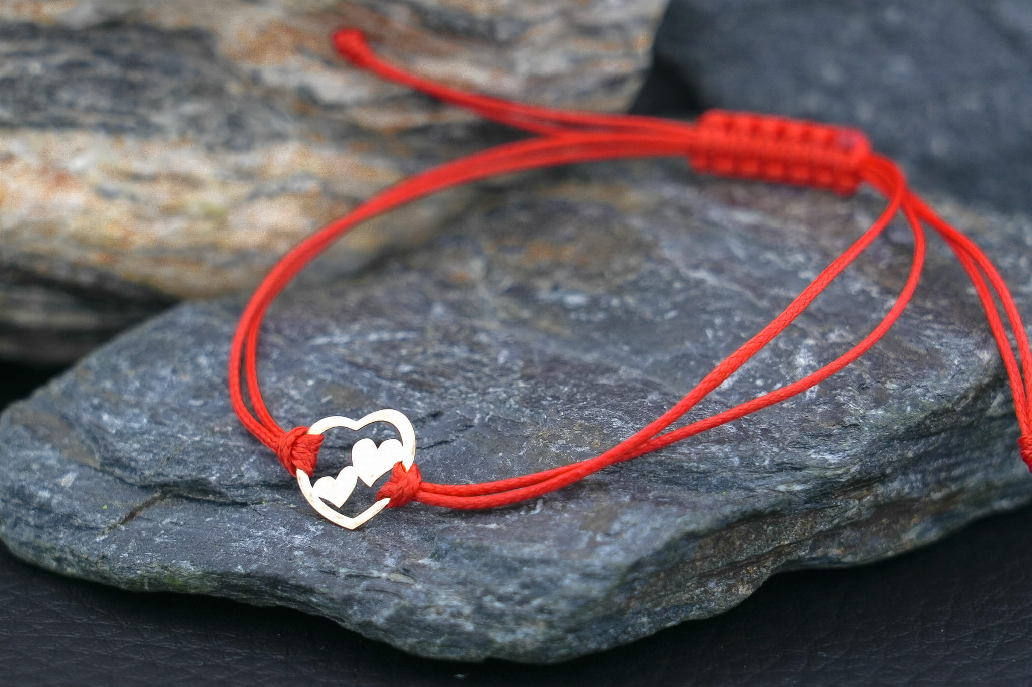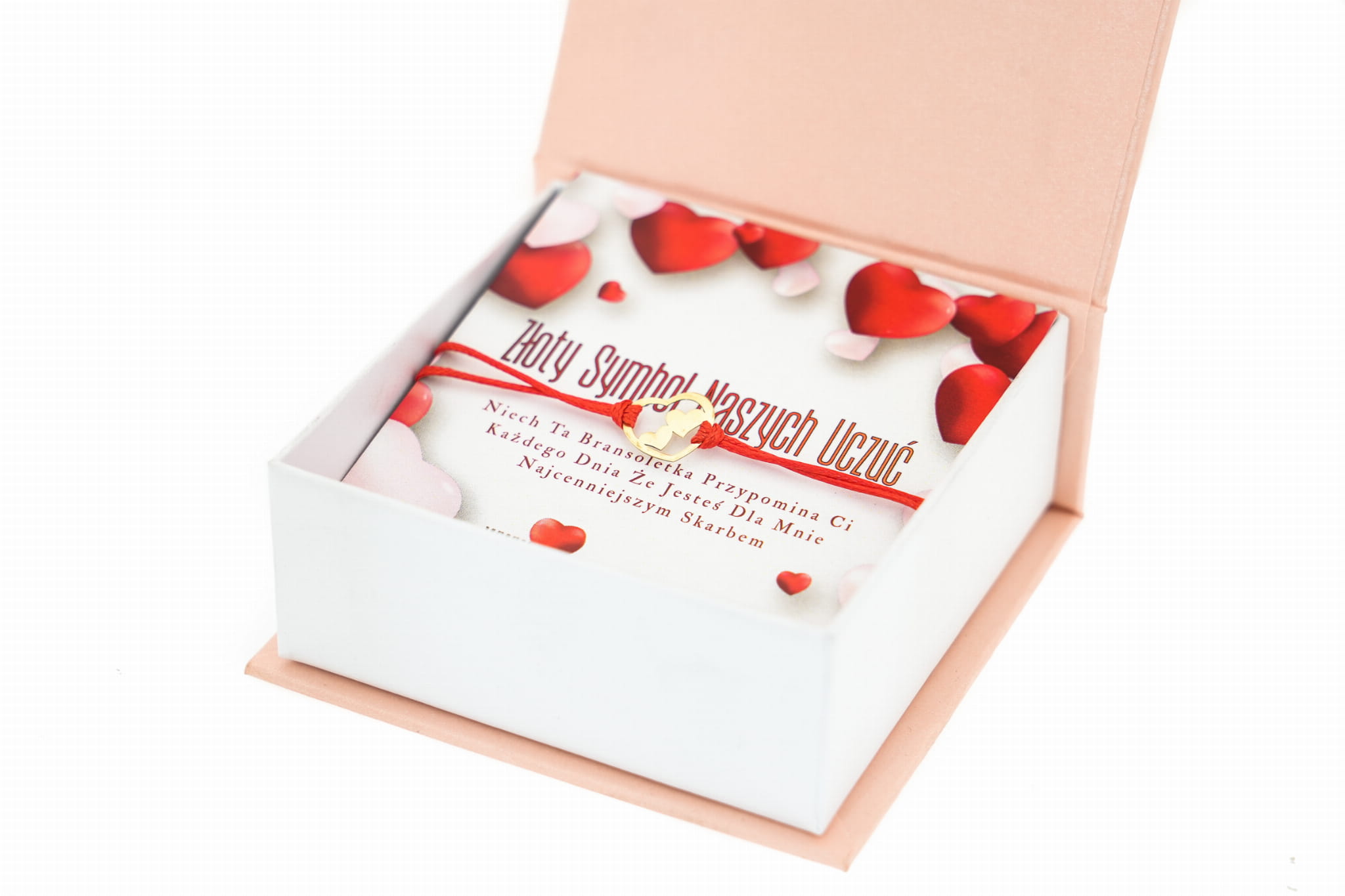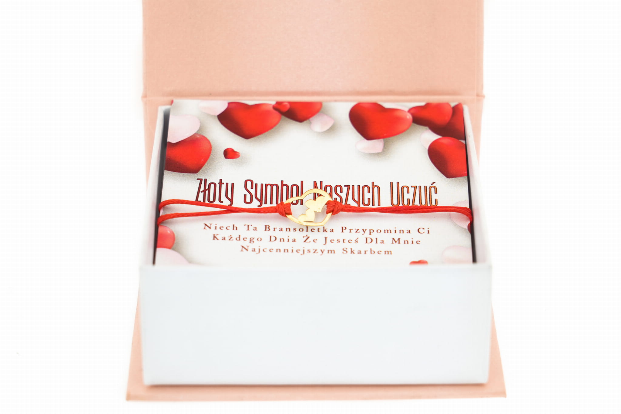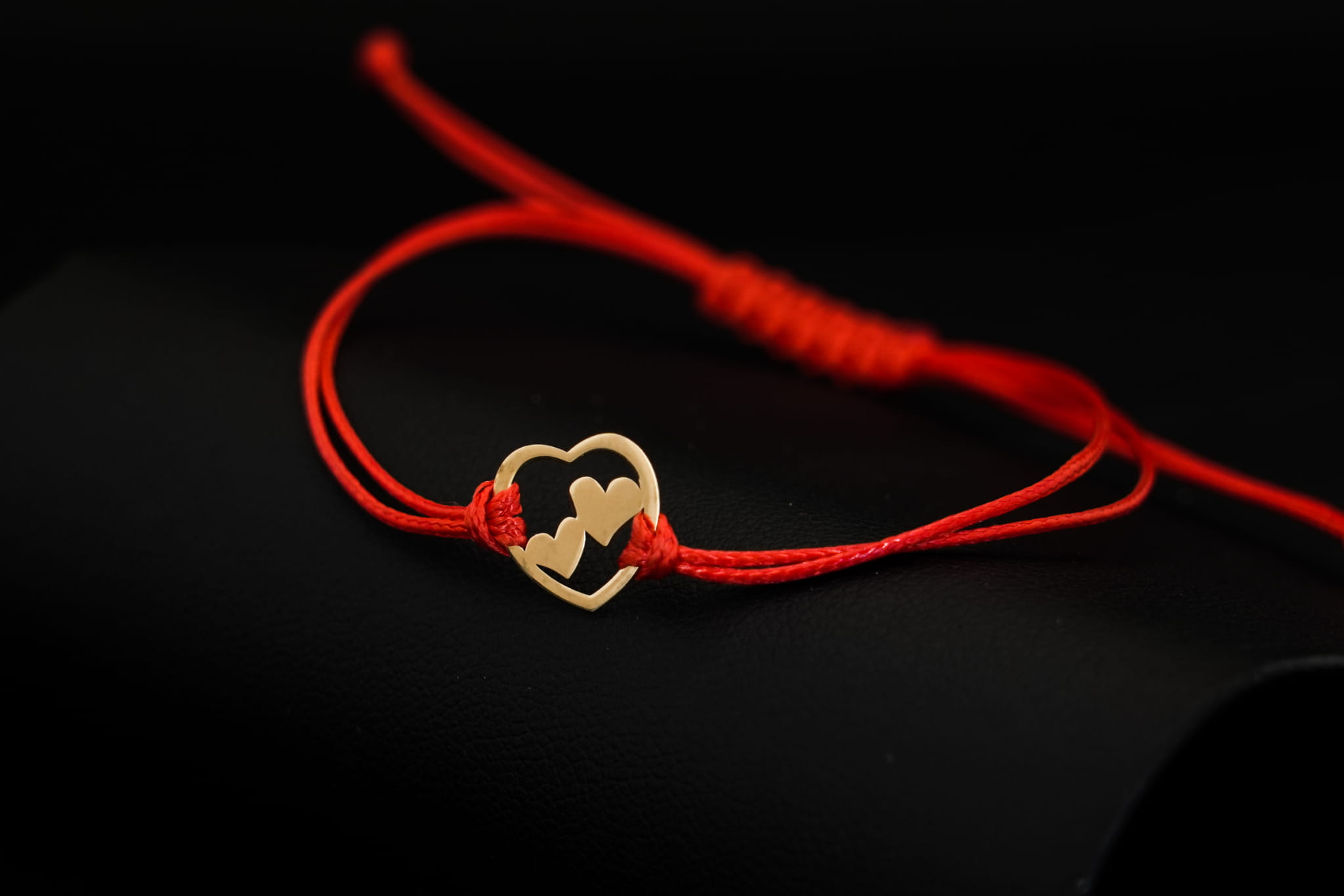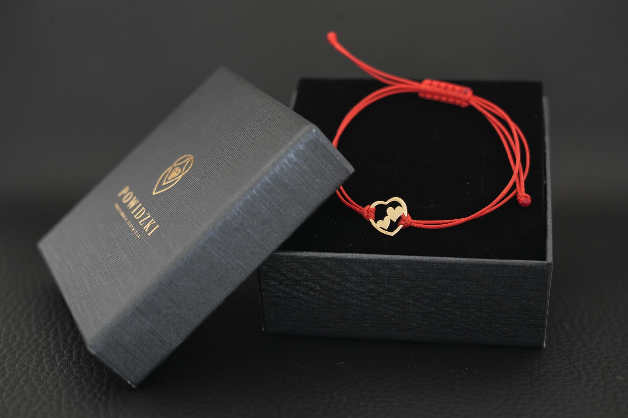 Głównym elementem biżuterii jest złote serce (próba 375), które w swoim ażurowym wnętrzu skrywa dwa mniejsze, połączone ze sobą serduszka. Ten subtelny detal sprawia, że bransoletka jest nie tylko ozdobą, ale osobistym talizmanem przypominającym o tym, co najważniejsze.