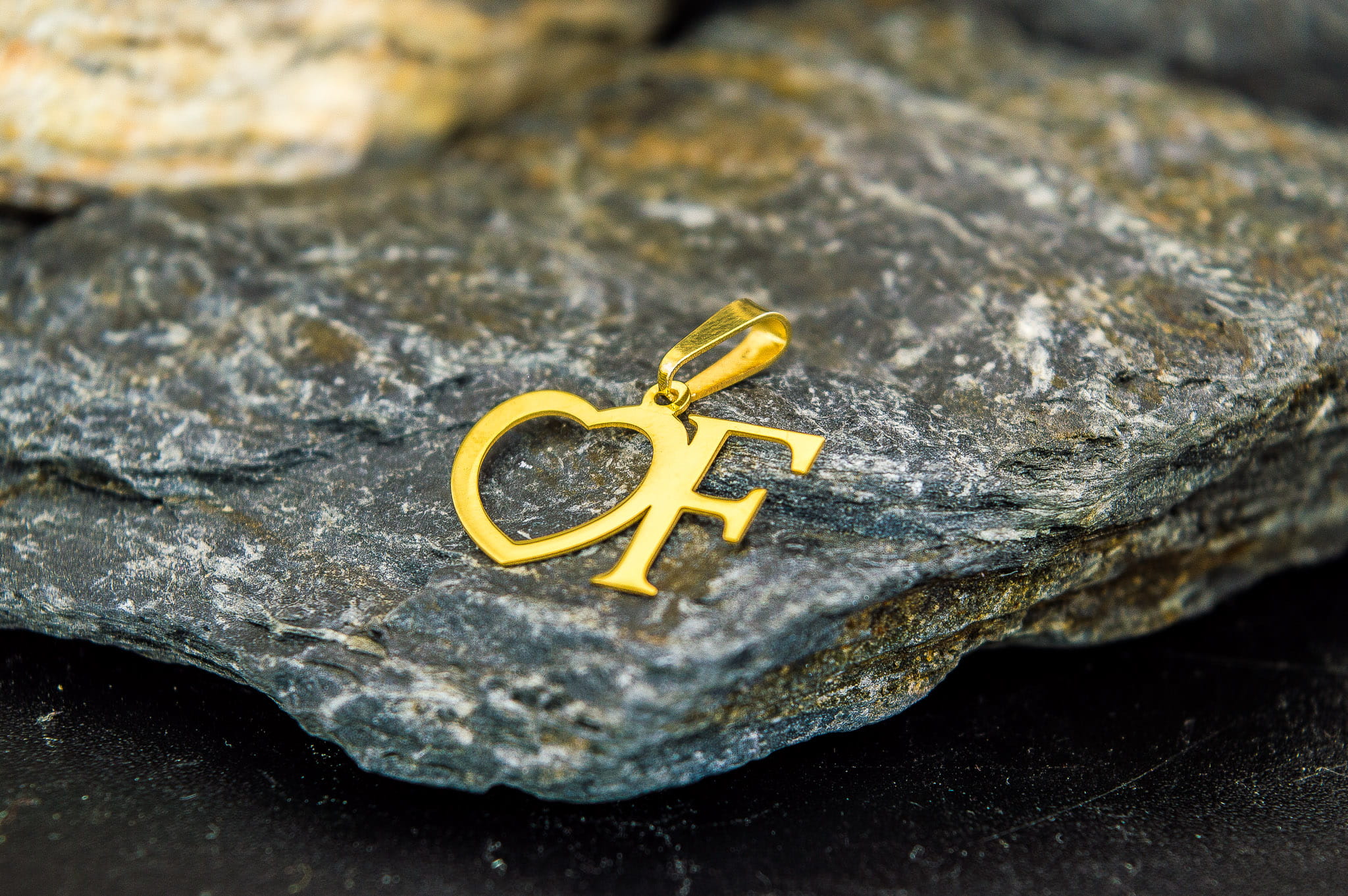 Złota Literka F z Sercem