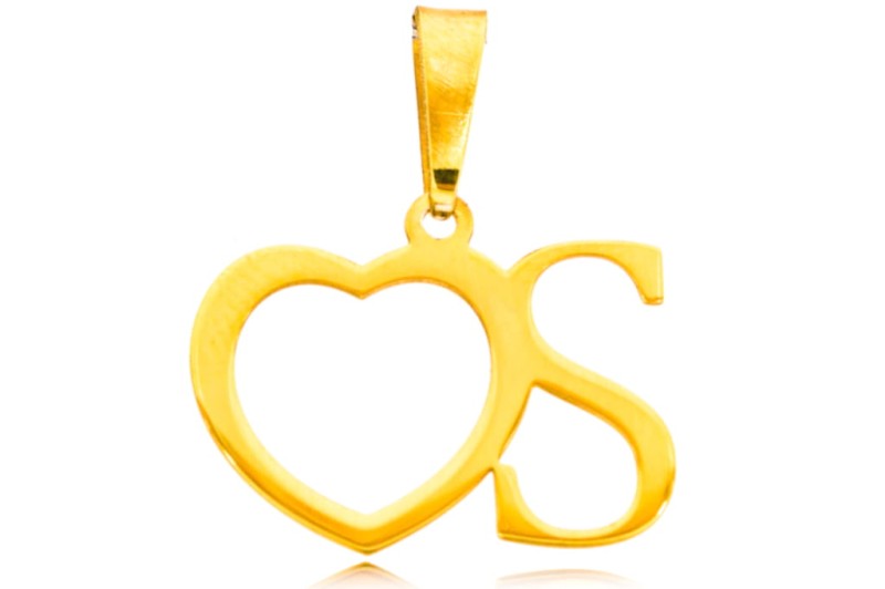 Złota Literka Alfabetu "S" z Sercem
