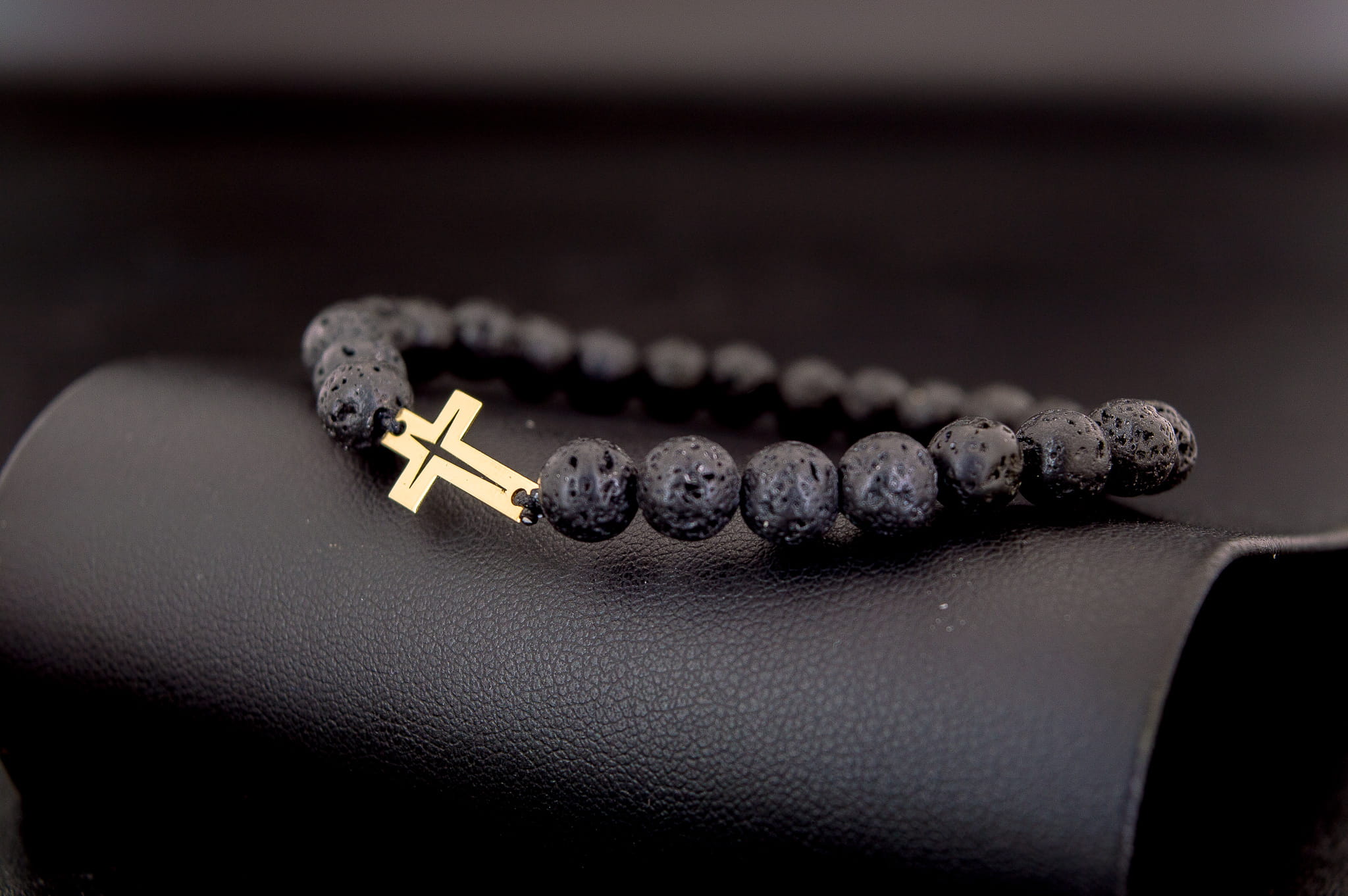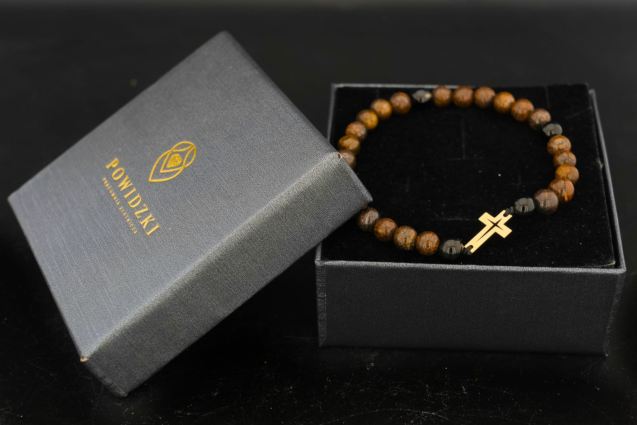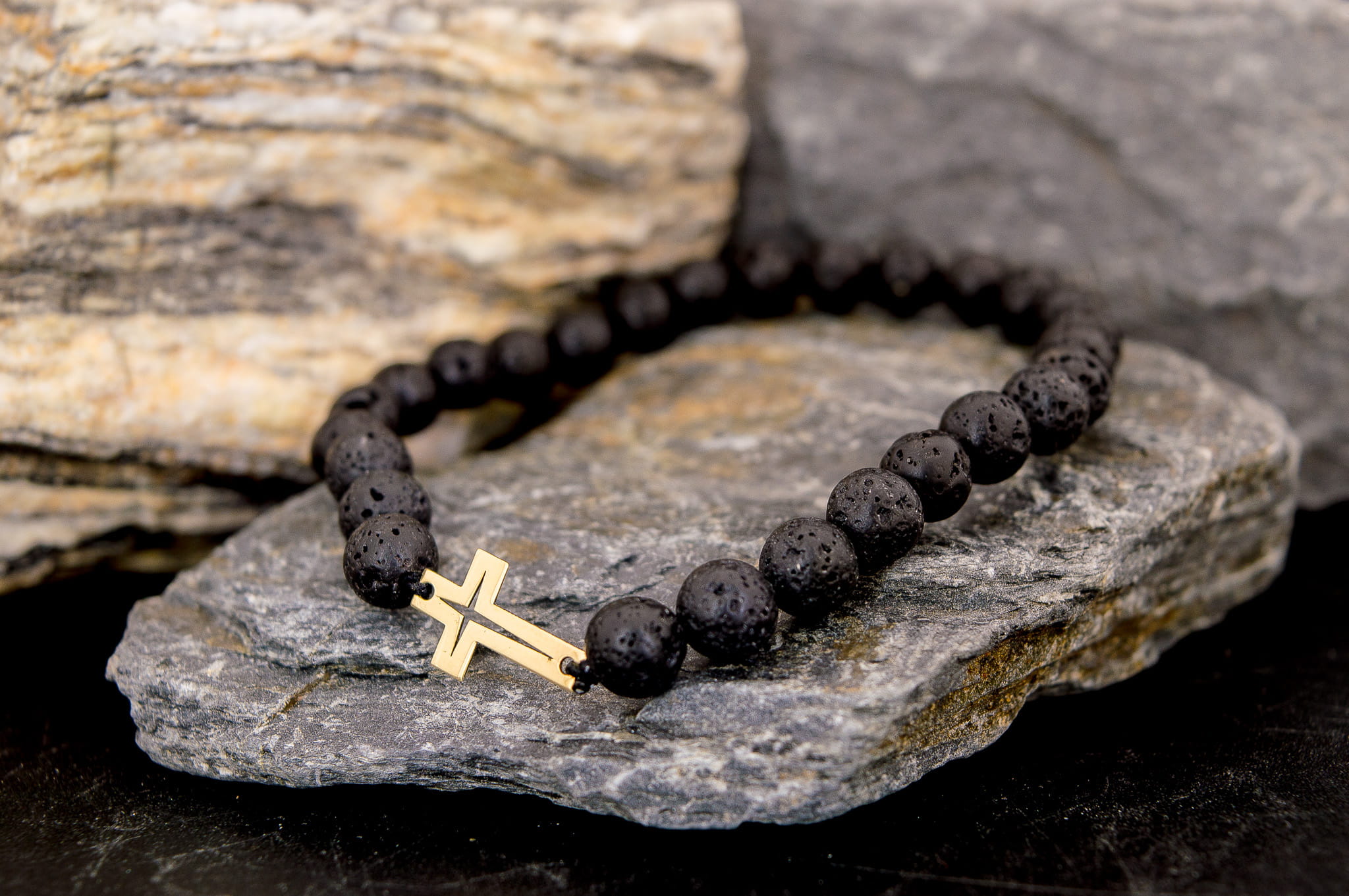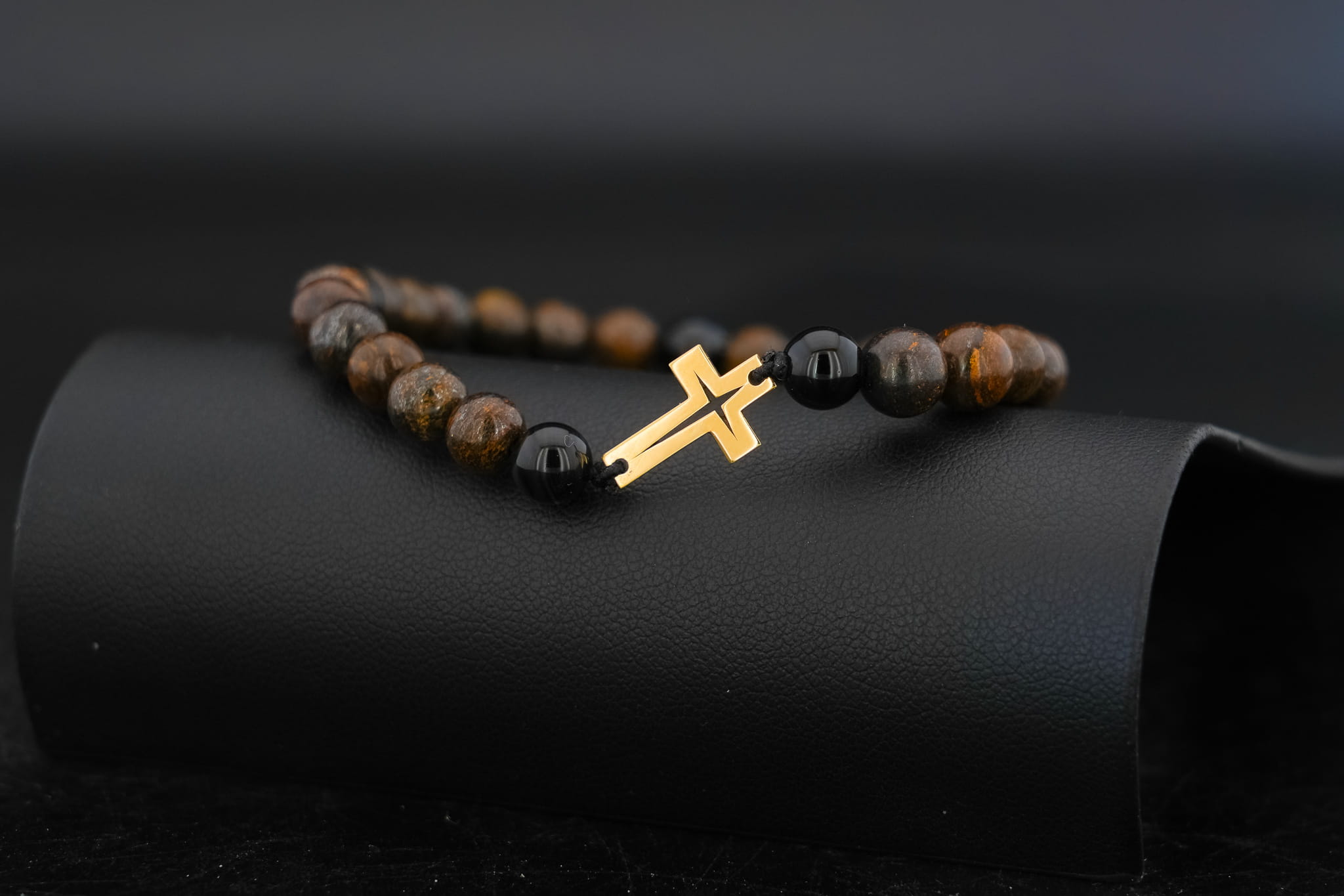 Męska Bransoletka z Kamieni Naturalnych – Złoty Krzyż Próba 375