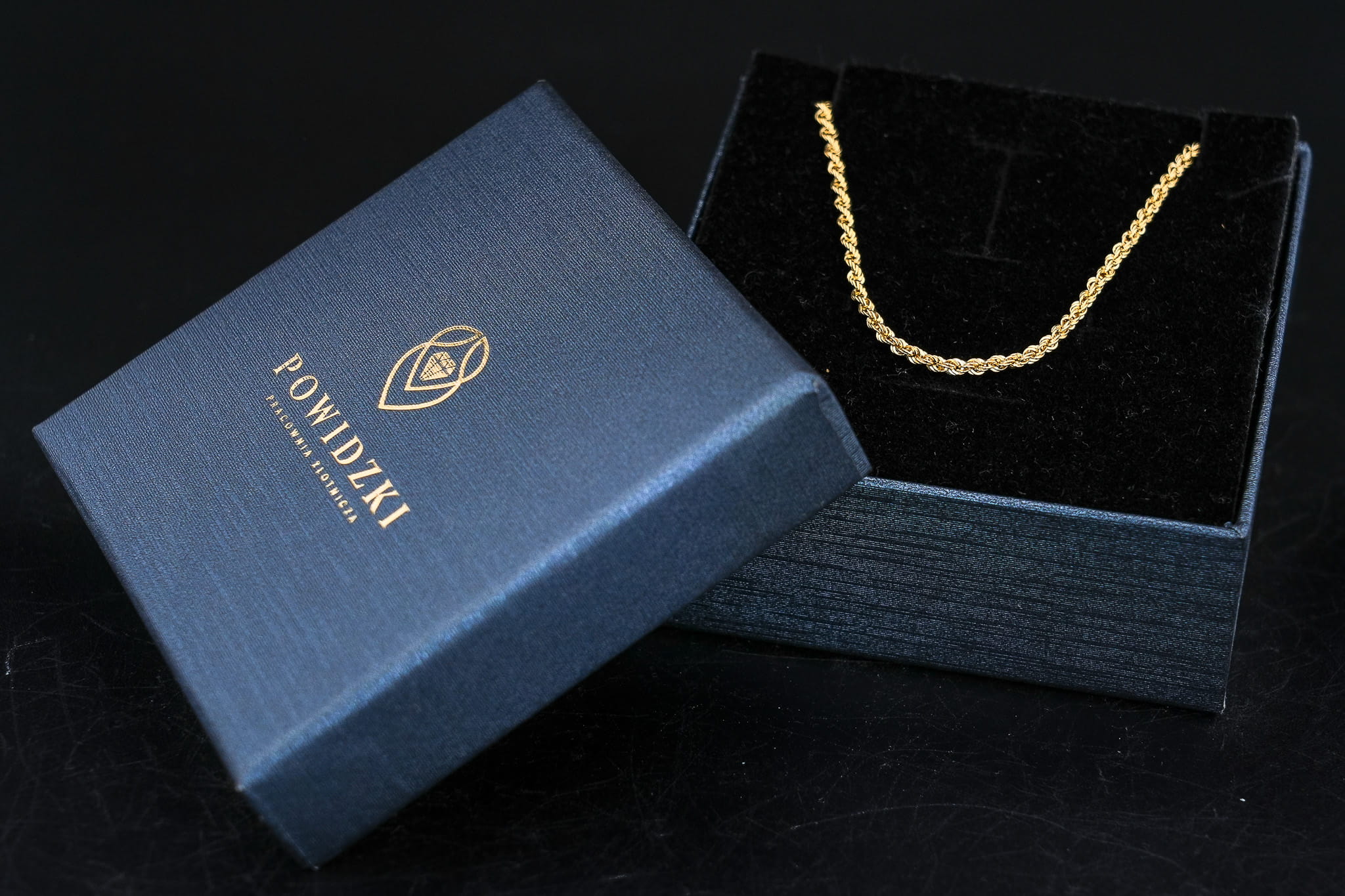 Każdy zakupiony łańcuszek pakujemy w eleganckie pudełko z logo naszej Pracowni Złotniczej Powidzki, co czyni go idealnym prezentem dla bliskiej osoby lub wyjątkowym dodatkiem do Twojej własnej kolekcji.